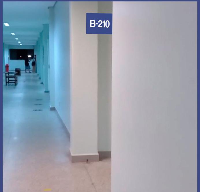 Orientação geral, direcionando a sala desejada. Informar o número de salas (Ex: Sala 202 - 212).
