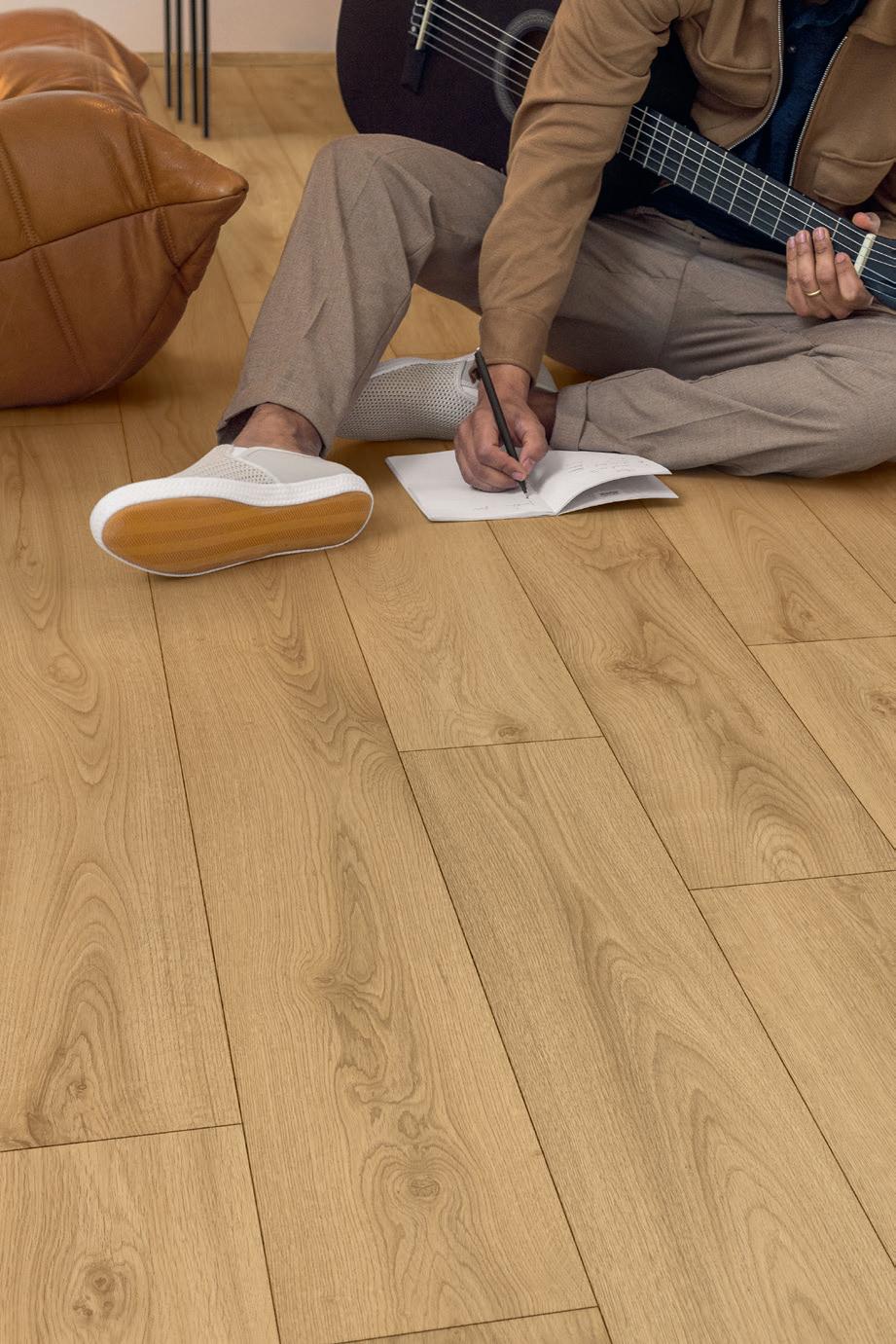 Nerimaujate dėl vandens, išsiliejusių skysčių arba įbrėžimų poveikio jūsų grindims? Neverta! Laminuotos „Quick-Step“ grindys atlaikys visus gyvenimo iššūkius, kad galėtumėte atsipalaiduoti ir tiesiog mėgautis jūsų namų grožiu.