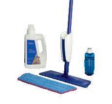 Mopphalter mit nachfüllbarem Wassertank und praktischem Griff, um Ihren Boden einfach zu befeuchten und zu wischen. Enthält auch einen waschbaren Mikrofaser-Mopp und 1 Liter eines Quick-Step-Reinigungsprodukts. Eine nachhaltige Lösung zur Reinigung Ihres Bodens.