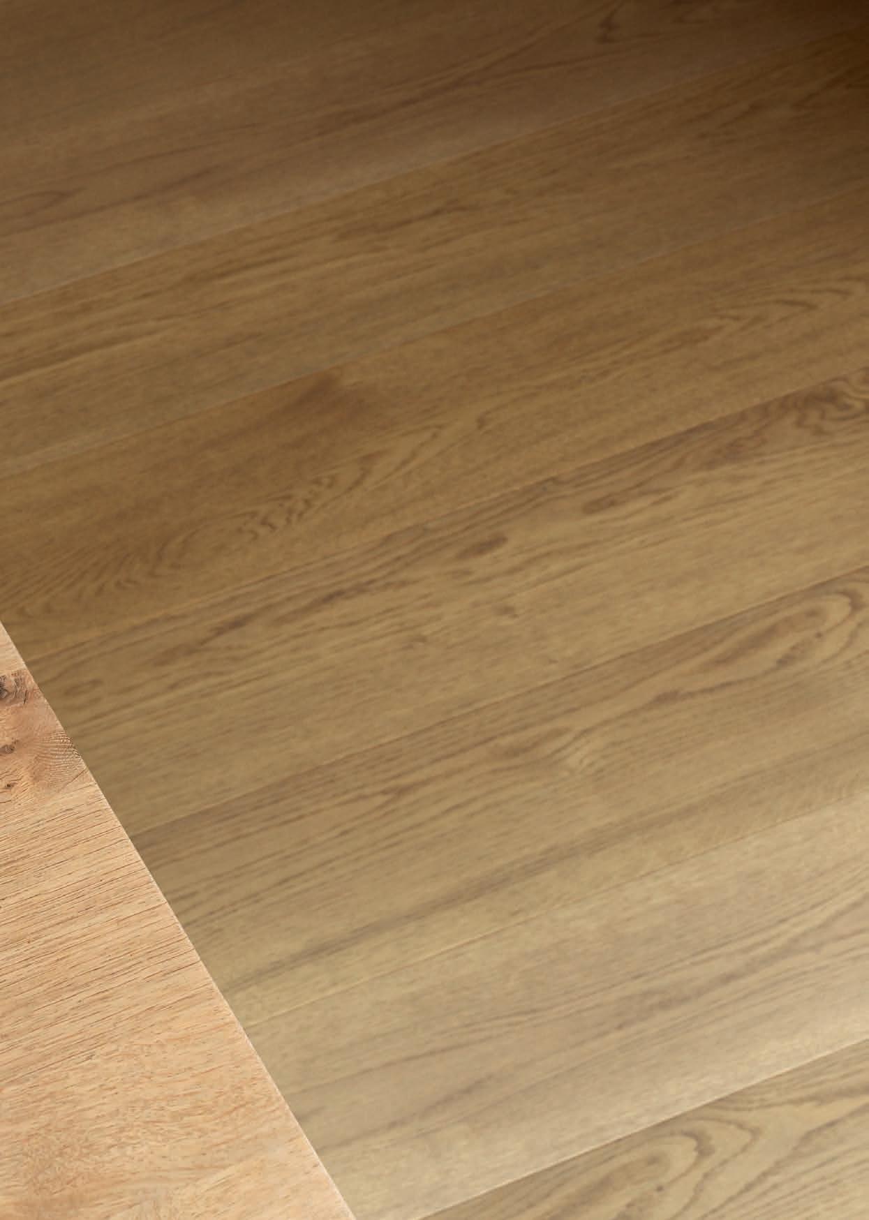 Ihr Boden sieht niemals dreckig oder dunkel aus. Dank dem einzigartigen Beschichtungssystem, das die gesamte Oberfläche bedeckt, auch bis in die tiefste Oberflächentextur, sind unsere Böden vor Wasser geschützt und einfach zu reinigen. Schmutz oder Flüssigkeiten bleiben nicht am Holz haften!