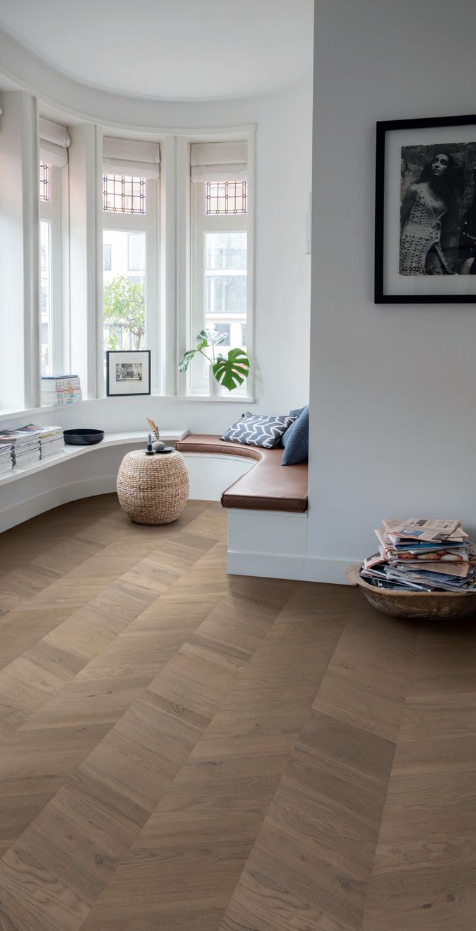 Les gammes Quick-Step Cala, Cascada et Amato conviennent à toutes les pièces, même à la salle de bains ou à la cuisine, grâce à notre technologie d’étanchéité. Dans les pièces qui ne sont pas exposées à l’eau, toutes nos autres collections peuvent être posées. Comme notre bois est pré-traité avec de l’huile ou du vernis, il gardera son aspect neuf pendant des années.