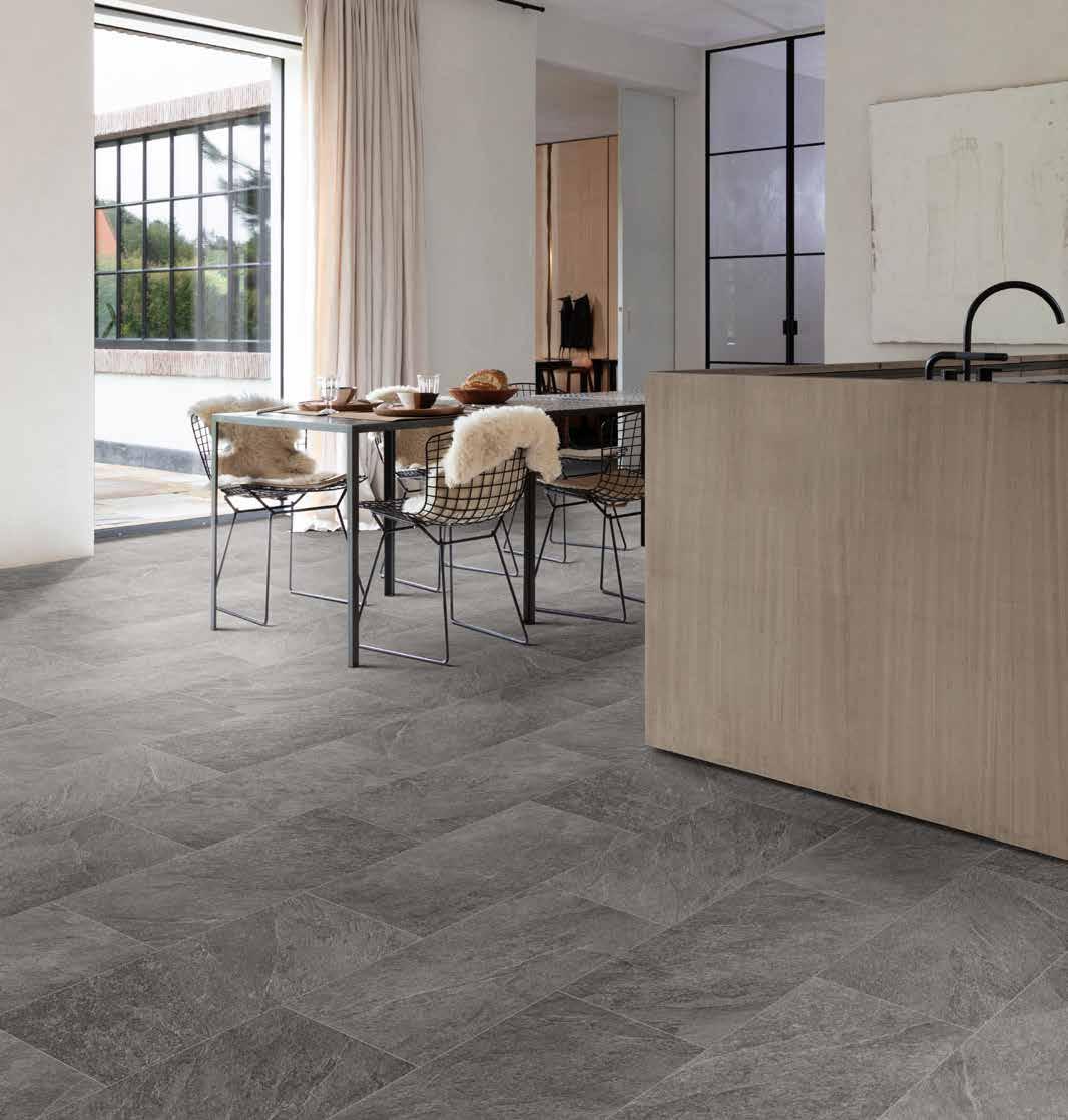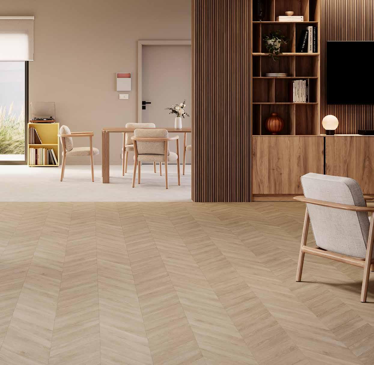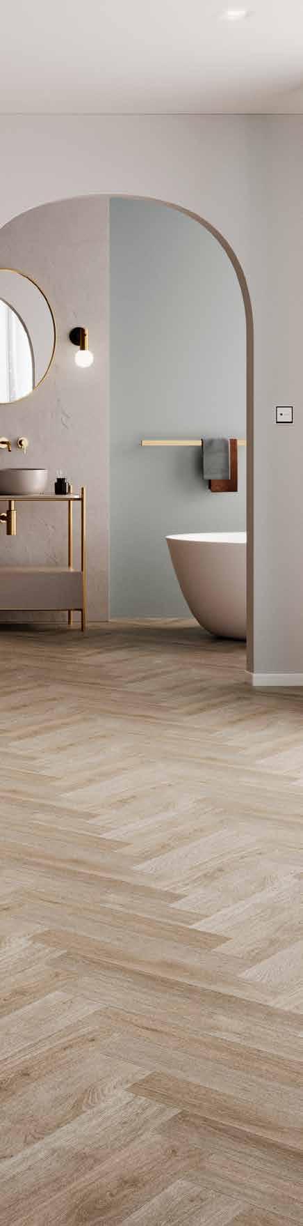 V-groove embossing technology that creates a realistic effect, rivalling the look of luxury vinyl tiles.