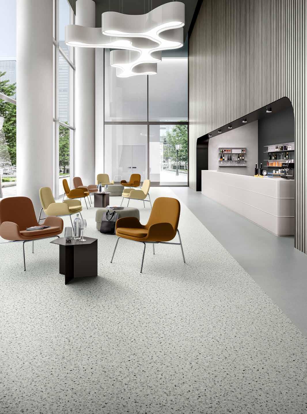 A durable solution for high-traffic spaces, our premium quality compact flooring is strong and impact resistant, with the lowest residual indentation of all our ranges. Versatile in any environment, it excels in withstanding wear from rolling and heavy objects. Easy to install and available in a wide variety of inspiring designs, it also offers hygienic and slip-resistant features.