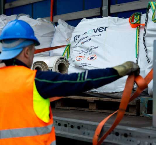 After installation or at end-of-life, old floors and leftover rolls are collected into bags or on pallets. The customer contacts us to arrange collection.
