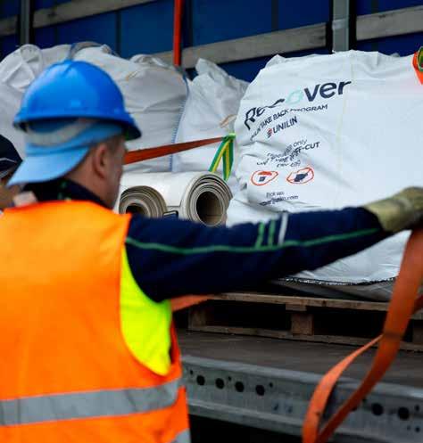 After installation or at end-of-life, old floors and leftover rolls are collected into bags or on pallets. The customer contacts us to arrange collection.