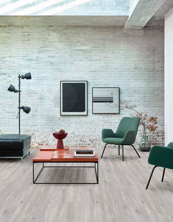 Grey Moduleo LayRed floors often let other parts of the room do the talking, whether it’s a piece of design furniture, decorative greenery or a daring colour accent. You see, there’s nothing boring about grey. Grey never grows old. And it certainly never goes out of style.