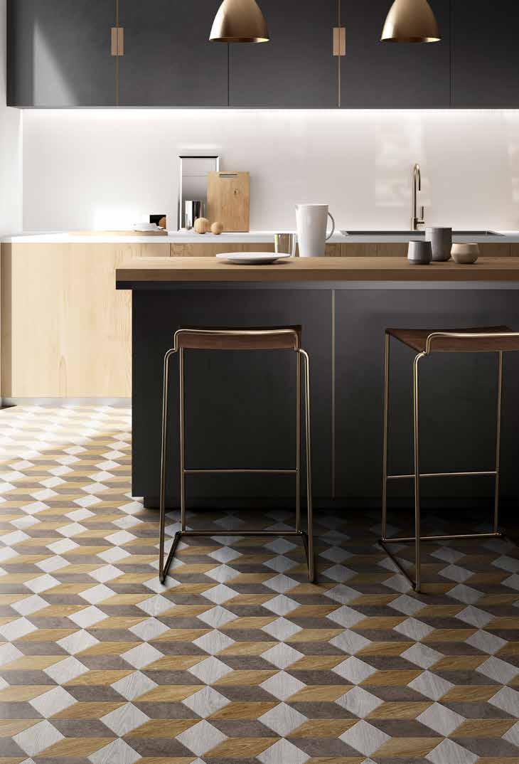 Eik, zandsteen, graniet en marmer voor een tijdloze vloer. Experimenteer met donkere of gouden