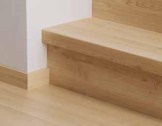 Copertura calpestio in vinile durevole con un paragradino arrotondato per rifinire in modo pulito le scale. Il rivestimento è realizzato con lo stesso materiale del pavimento, quindi la tua scala sarà abbinata al 100%.