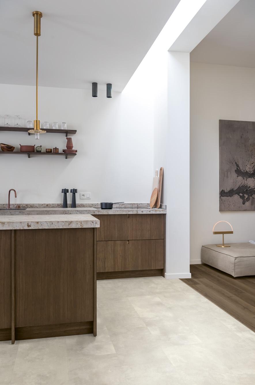 以尋找「完美原創感」為起點,打造令人驚豔的地板。Muse 源於自 比利時的青石採石場。比利時青石來源可追溯至 4 億年以前,地點為 現在的亞爾丁區,但過去曾為熱帶淺海。潮水的沉積物中有少量白 堊,會隨時間堆積成龐大的石層。這也是為什麼比利時青石含有大量 貝殼和化石,可打造出獨特的石板,進而做為此 Muse 地板的發想靈 感。