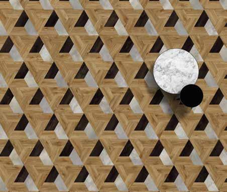 Liking the vortex pattern is one thing. The combination of different wood and stone textures or striking trend colours is another. The result? Repetitive geometric designs for a refined graphic signature in your interior. Intriguing and inviting at the same time.