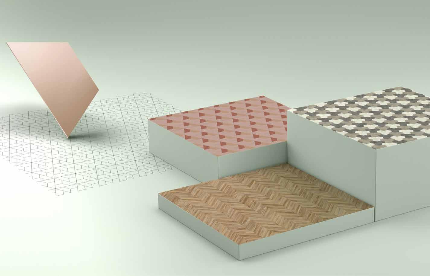 The Mesh pattern allows you to cleverly play with colour. Made up of wooden textures, pink accents and grey tones, Mesh offers a combination for anyone who wants to pour their personality into their interior. The patchwork of colours and textures serves as a true eyecatcher. Mesh’s presence helps filling up rooms that might otherwise seem empty, adding character along the way.