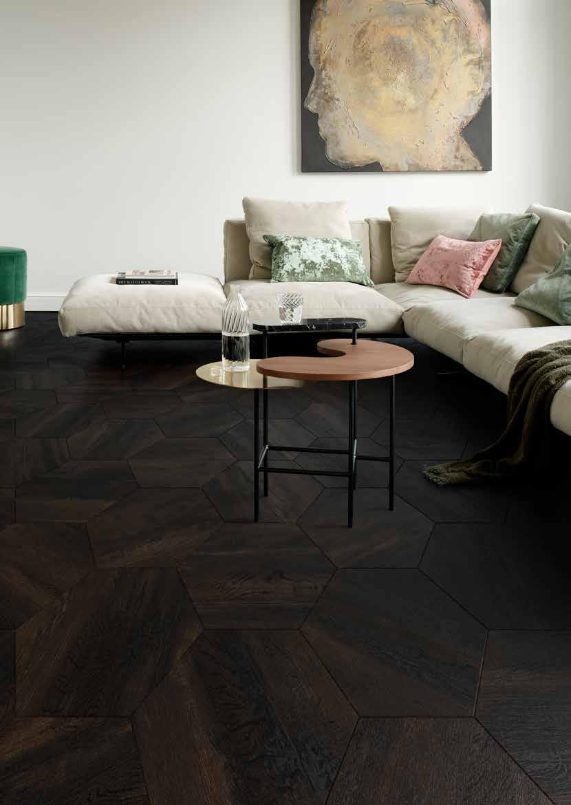 A central hexagon flanked by interlaced parallelograms. Wicker is made up of two shapes that fit so well together, it’s like they were made for each other. They work together like a floor should work with your interior, forming a captivating pattern. Refined, yet full of character.
