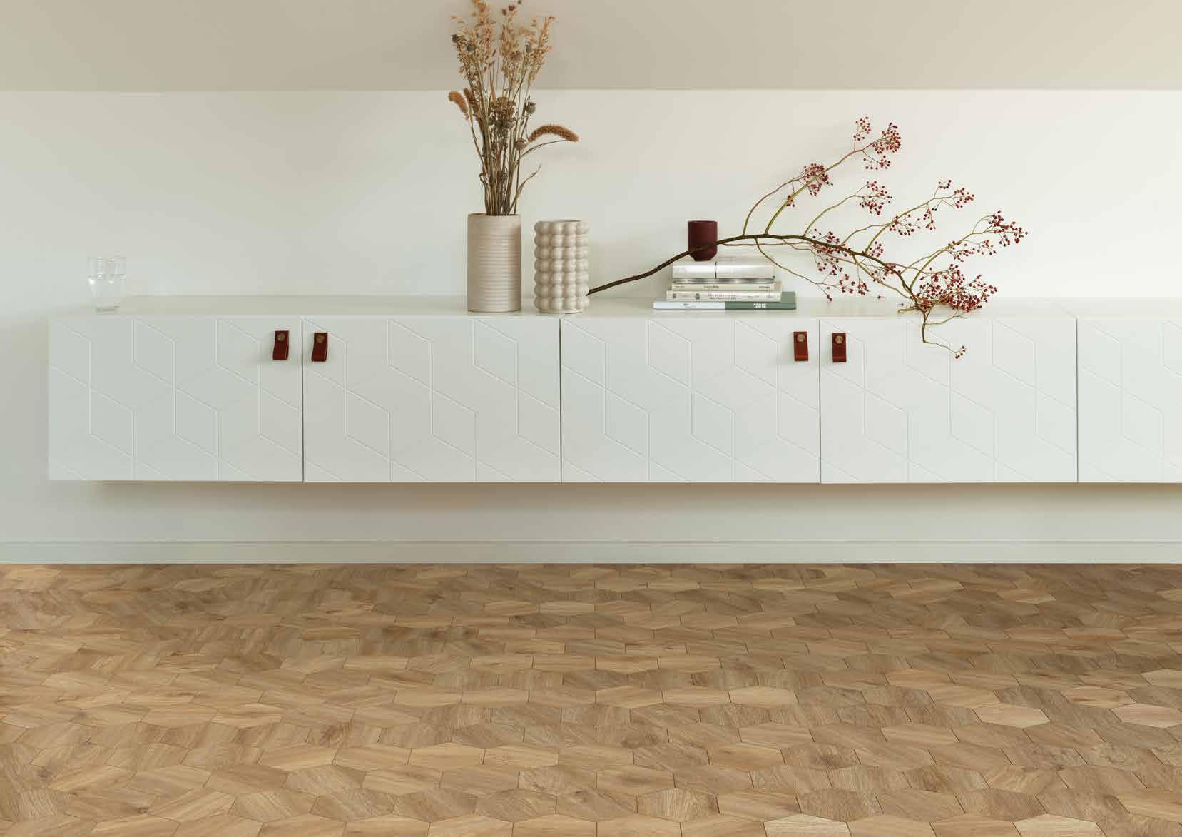 Building on the success of Moduleo® Moods, we now present the secondgeneration creative design floors. Additional shapes, exciting new patterns and a selection of soft pastel colours represent the biggest changes. Two geometric shapes – the hexagon and the diamond – are now also available in a larger size.