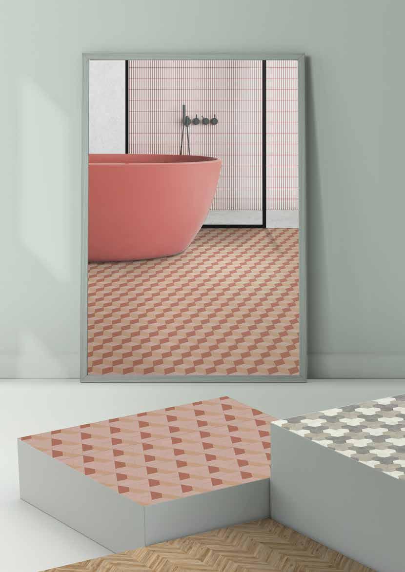 Diamond Cubes is the perfect fit for your bathroom. Made out of luxury vinyl tiles, it is water resistant, protected against temperature changes and incredibly easy to clean and maintain. The Diamond Cubes pattern has all it takes to make your morning routine even more invigorating. A stylish and refreshing design element, sure to liven up your bathroom.