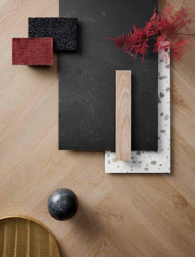 Ein zeitloses Design, das mit den satten Farbtönen von Sandstein, der feinen Dynamik von edlem Marmor und der Eleganz moderner Betoneffekte spielt.