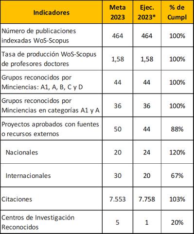 44 grupos de investigación. 36 en categorías A1 y A 464 publicaciones WoS Scopus**