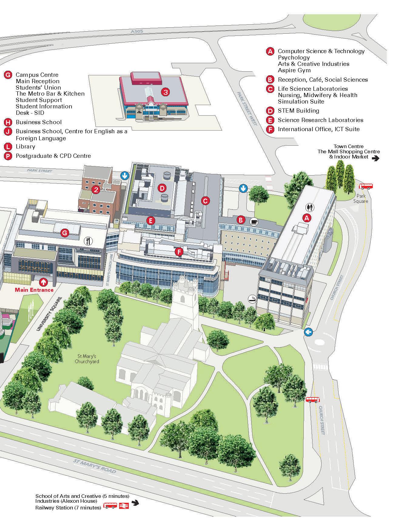 There are also libraries at Bedford and Aylesbury providing study spaces, ICT, customer services assistance, and Study Hub support.