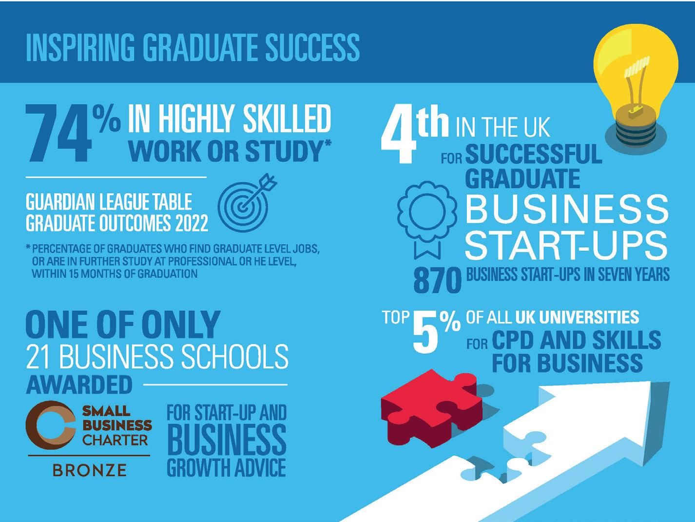 • Our courses focus on building your employability: 97% of our graduates are in work or study six months after finishing.
