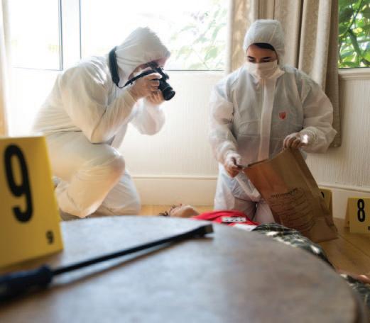 Defnyddir ein labordai safleoedd troseddau gan fyfyrwyr gwyddoniaeth fforensig a phlismona proffesiynol i ddysgu mwy am fathau penodol o dystiolaeth fel olion bysedd, marciau esgidiau, olion teiars a phatrymau ysgeintiadau gwaed. Mae ein tŷ archwilio safleoedd troseddau yn cynnwys nifer o efelychiadau o safleoedd troseddau realistig – o fyrgleriaethau domestig ac achosion o dorri i mewn, i safleoedd mwy cymhleth fel dynladdiadau a thanau angheuol.