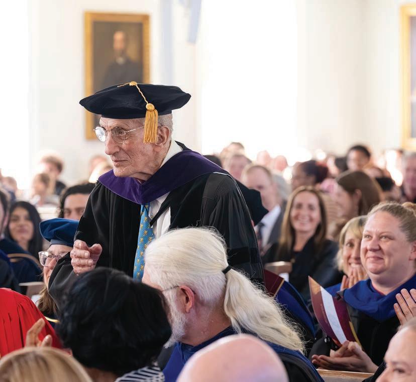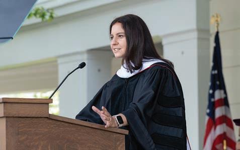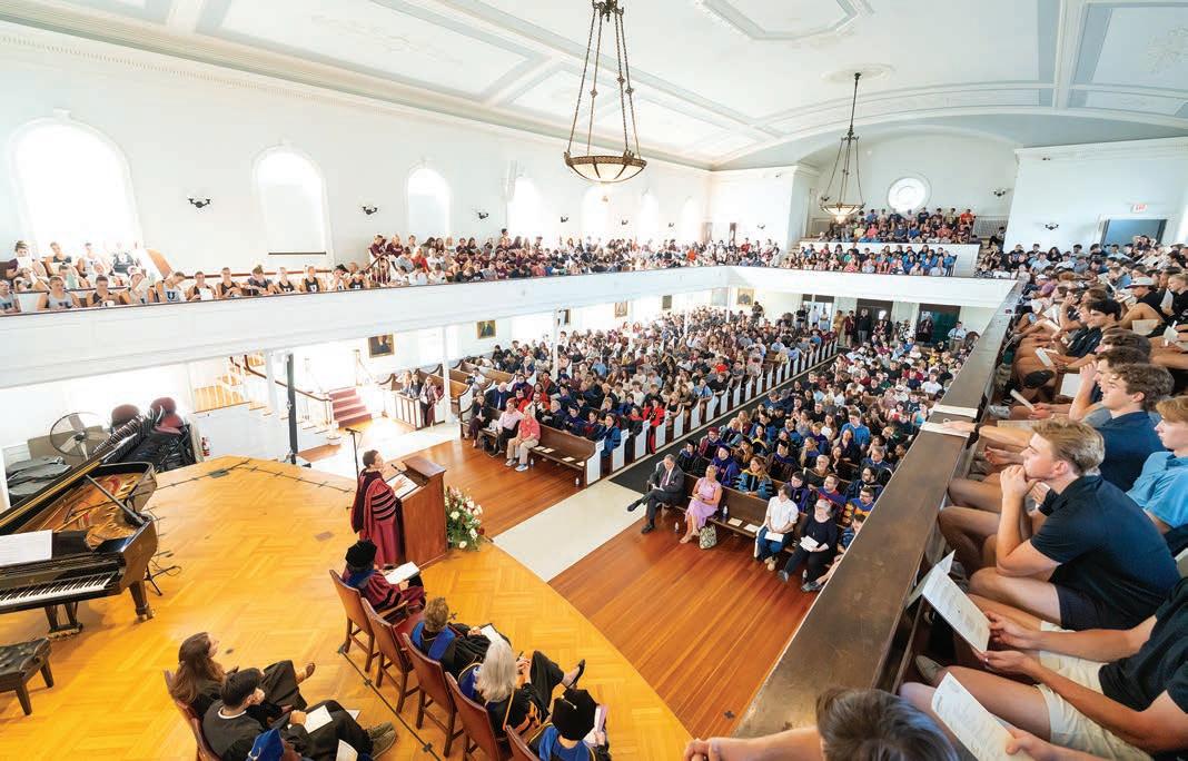 and grandfather, Abraham Stillman. Paisley Parmenter ’27 was presented with the Music Department Convocation Prize by Jennifer Matsue, professor of music and chair of the department. A biomedical engineering major, Parmenter displayed her vocal prowess with a powerful performance of “Quando me'n vo” from Giacomo Puccini's 1896 opera La bohème. She was accompanied by Akina Yura, affiliate artist in the Music Department.