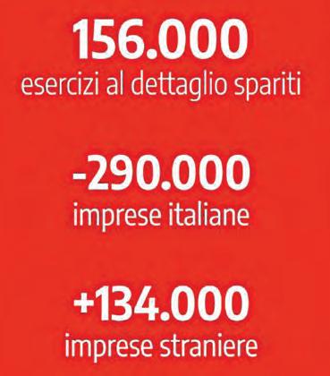 Negli ultimi 13 anni – tra il 2012 e il 2025 – in Italia sono scomparsi 156 mila punti vendita del commercio al dettaglio (negozi e ambulantato). Crescono invece le imprese della ricettività e della ristorazione (+19mila) ed aumentano anche i locali commerciali sfitti. E’ il fenomeno della desertificazione commerciale che accelera: la fotografia viene dall’analisi “Città e demografia d’impresa” realizzata dall’Ufficio Studi Confcommercio. Un’analisi che riguarda 122 città (107 capoluoghi di provincia e 15 comuni non capoluogo popolosi), ma non grandi centri come Milano. Nel nostro territorio: Cinisello Balsamo, Lodi, Monza e Sesto San Giovanni (vedi a pag. 4) Il fenomeno desertificazione commerciale colpisce soprattutto il Nord Italia (Belluno, Vercelli, Trieste, Alessandria, Savona, Gorizia con perdite oltre il 33%).