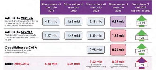 ● Oggettistica da casa: questa categoria, che include lampade e complementi, incide per 0,96 miliardi di euro sul totale mercato.