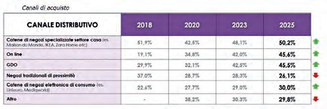 ● Specializzati e web: le catene specializzate restano il primo canale (50,2%), ma l'online continua la sua scalata raggiungendo il 45,6% delle preferenze.