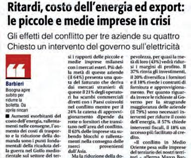 Milano Monza Brianza Lodi Con il conflitto in Medio Oriente effetti negativi per 3 imprese del terziario su