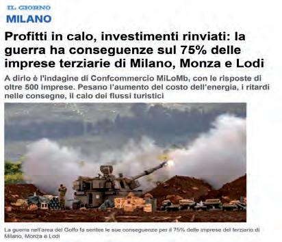 Il conflitto in Medio Oriente, area del Golfo, penalizza sensibilmente le attività del terziario di Milano, Monza Brianza, Lodi.