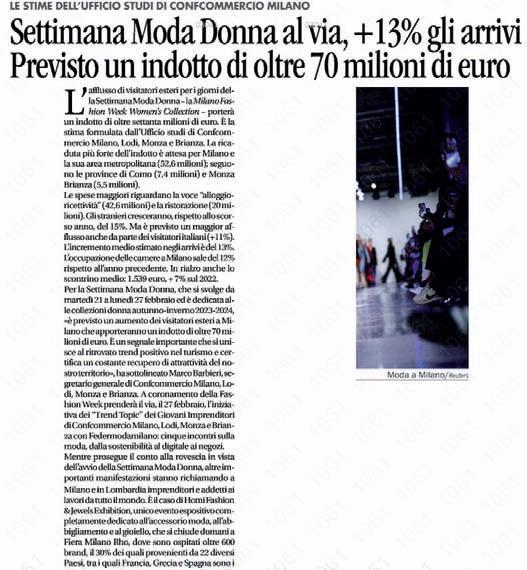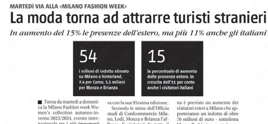 L’afflusso di visitatori esteri per i giorni della Settimana Moda Donna (la recente Milano Fashion Week Women’s Collection) porta un indotto di oltre 70 milioni di euro.