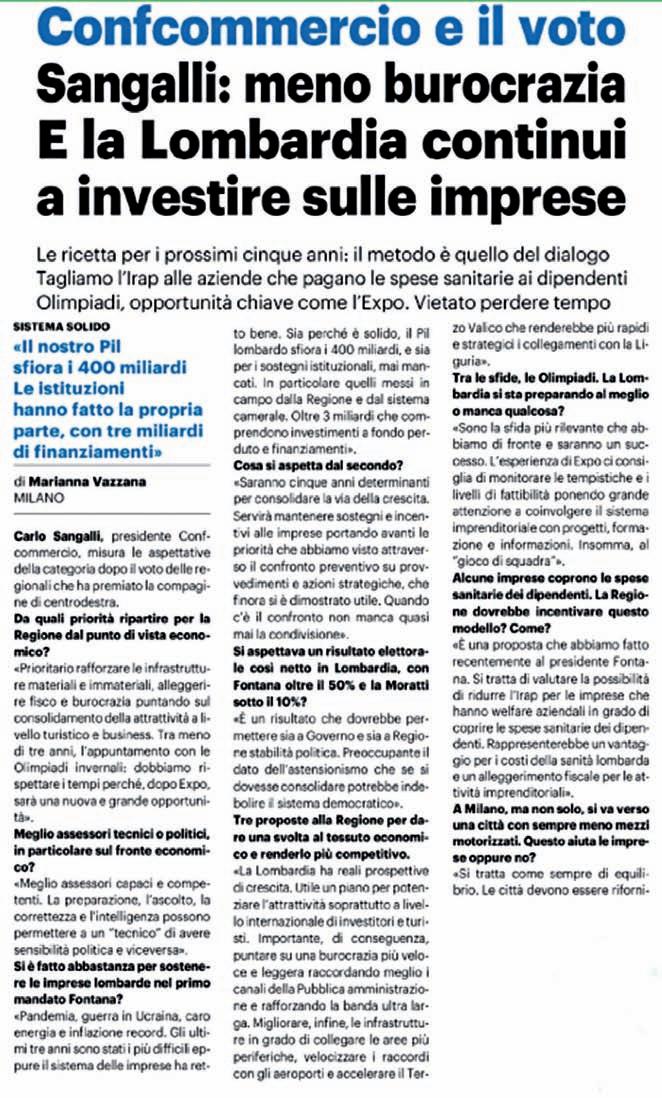 Carlo Sangalli - Presidente di Confcommercio Milano, Lodi, Monza e Brianza