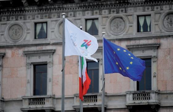 Andrea Abodi, ministro per lo Sport e i Giovani; Marco Fichera, presidente del Comitato Organizzatore Milano 2023; Giovanni Malagò, presidente del Coni; Attilio Fontana, presidente di Regione Lombardia; Martina Riva, assessore allo Sport, Turismo e Politiche Giovanili del Comune di Milano; Antonio Rossi, sottosegretario di Regione Lombardia con