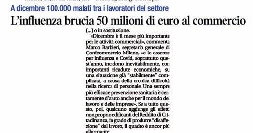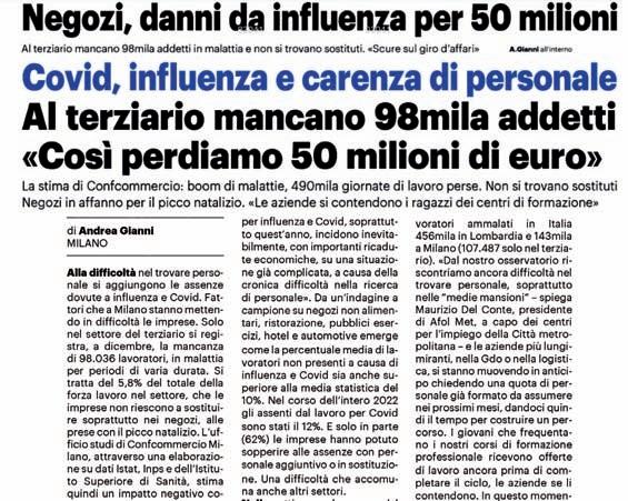 “Le assenze per influenza e Covid – ha commentato Marco Barbieri, segretario generale di Confcommercio Milano, Lodi, Monza e Brianza - incidono inevitabilmente,