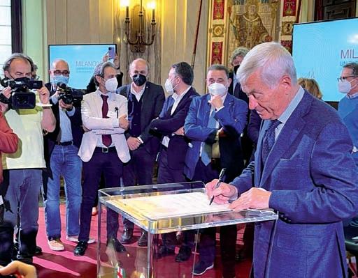 Alla recente conferenza del Comune di Milano di bilancio delle prime iniziative per il Patto del Lavoro (nelle foto, la firma del Patto da parte del presidente di Confcommercio Carlo Sangalli e la stretta di mano con l’assessore allo Sviluppo economico del Comune di Milano Alessia Cappello), è stato presentato lo Sportello, avviato da Confcommercio Milano, Lodi, Monza e Brianza, sulla certificazione della parità di genere – Punto Parità. Con la collaborazione di una società specializzata leader nei servizi di certificazione, SGS CTR, ven-