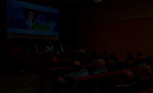 Consiglio camerale d’insediamento: foto generale e, sopra, in primo piano, da destra Carlo Sangalli, rieletto all’unanimità presidente della Camera di Commercio di Milano Monza Brianza Lodi, il segretario generale dell’Ente camerale Elena Vasco, l’assessore allo Sviluppo economico di Regione Lombardia Guido Guidesi