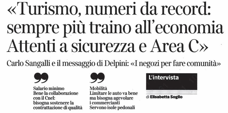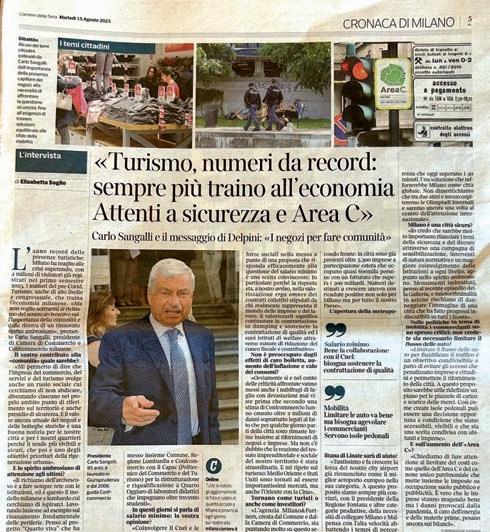 CARLO SANGALLI E IL MESSAGGIO DELL'ARCIVESCOVO DELPINI: "I NEGOZI PER FARE COMUNITÀ" - Milano ha reagito alla crisi superando, con 4 milioni di visitatori già registrati nel primo semestre 2023, i numeri del pre-Covid. "Ma – ha affermato il presidente di Confcommercio Carlo Sangalli intervistato dal Corriere della Sera - non voglio sottrarmi al richiamo del nostro arcivescovo sull'importanza della comunità e della ricerca di un rinnovato spirito ambrosiano...l'impresa del commercio, dei servizi e del turismo svolge anche un ruolo sociale cui cerchiamo di non abdicare". Riguardo al tema del salario minimo per Sangalli "Coinvolgere il Cnel e le forze sociali nella messa a punto di una proposta…è una scelta convincente. In particolare perché la risposta sta, a nostro avviso, nella valorizzazione erga omnes dei contratti collettivi stipulati da chi realmente rappresenta il mondo delle imprese e del lavoro".