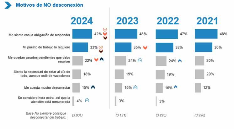 La desconexión mejora (tres puntos porcentuales vs. 2023), pero empeora la conciliación (6 puntos porcentuales vs. año anterior).