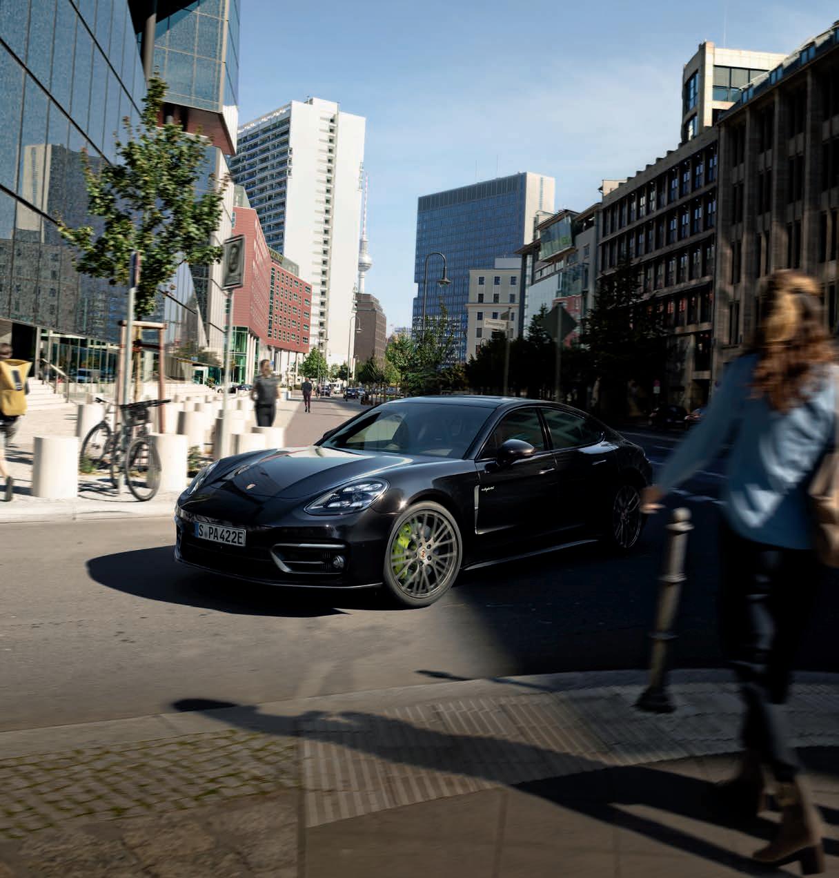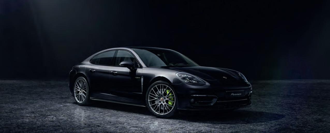 пециалното издание е разпознаваемо отвън по елементите с финиш в цвят платина – рамките на въздушните отвори зад предните колела, логото Porsche и обозначението на модела, като има опция и за 20-инчови джанти Panamera Style в същия цвят. Класата на луксозния интериор се допълва от спортен волан GT и сервоусилване Power Steering Plus, асистент за смяна на лентата, меко затварящи се врати с функция за комфортно влизане, удобни предни седалки с 14-степенно електрическо регулиране и функция за запаметяване, задни седалки с подгряване, аудиосистема Bose® със съраунд звук, интериорен пакет от полиран алуминий в черен цвят и логото Porsche на подглавниците. Интегрирани са и ексклузивни отличаващи елементи: протекторите на праговете на вратите са от полиран алуминий в черен цвят и съдържат логото Platinum Edition. Всички модели Platinum Edition се отличават и с аналогов часовник на таблото. Като стандартно оборудване в специалното издание Platinum Edition са включени и всички важни за клиентите предимства на модела, сред които Porsche Active Suspension Management и Porsche Dynamic Light System Plus. Боядисаните в цвят на платина 21-инчови джанти Exclusive Design Sport, черните спортни ауспуси, тонираните стъкла, рамките на страничните огледала в черен гланц и задните светлини Exclusive Design подчертават динамичната елегантност на автомобила. Луксът и комфортът имат своето софистицирано изражение в това бижу на технологиите и дизайна. |