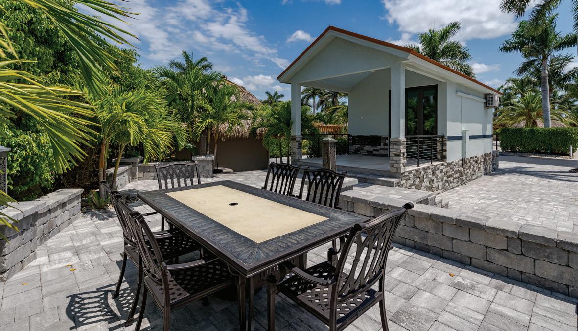 full bath. Outside, entertaining is a breeze with a stunning pool and fire pit. The all-tide dock area is navigable for any size boat and boasts a covered dock pavilion complete with built-in seating. The ideal location near the FJ Torres causeway offers quick and easy access on and off the island. The property spans 3 lots and enjoys the most surreal sunrises and sunsets.