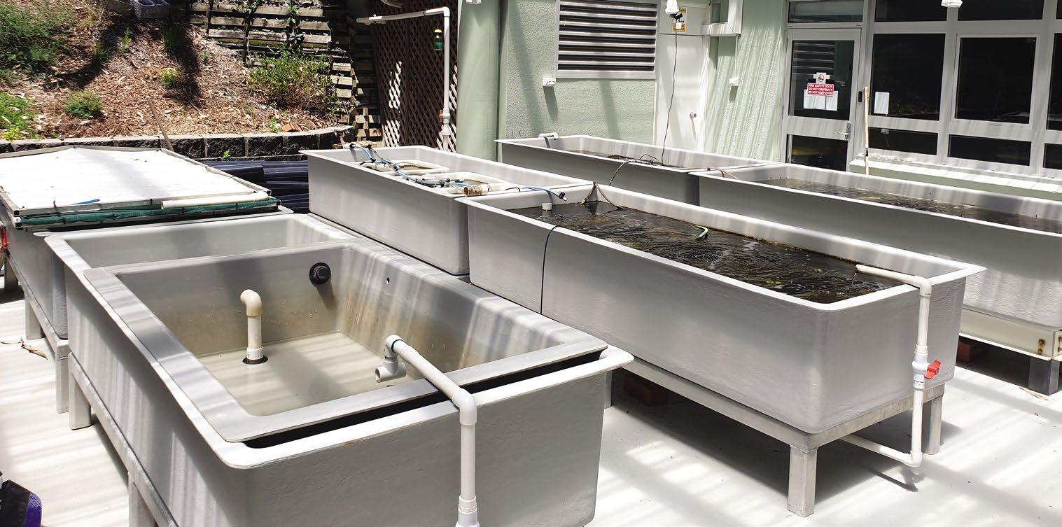 The large aquaculture farm allows the NMSC to house a wide range of fish and invertebrate species in a variety of round tanks and raceways that range from 1,000 to 7,000 litres. This space includes open air, undercover and climate-controlled rooms to cater for different animals and research requirements.
