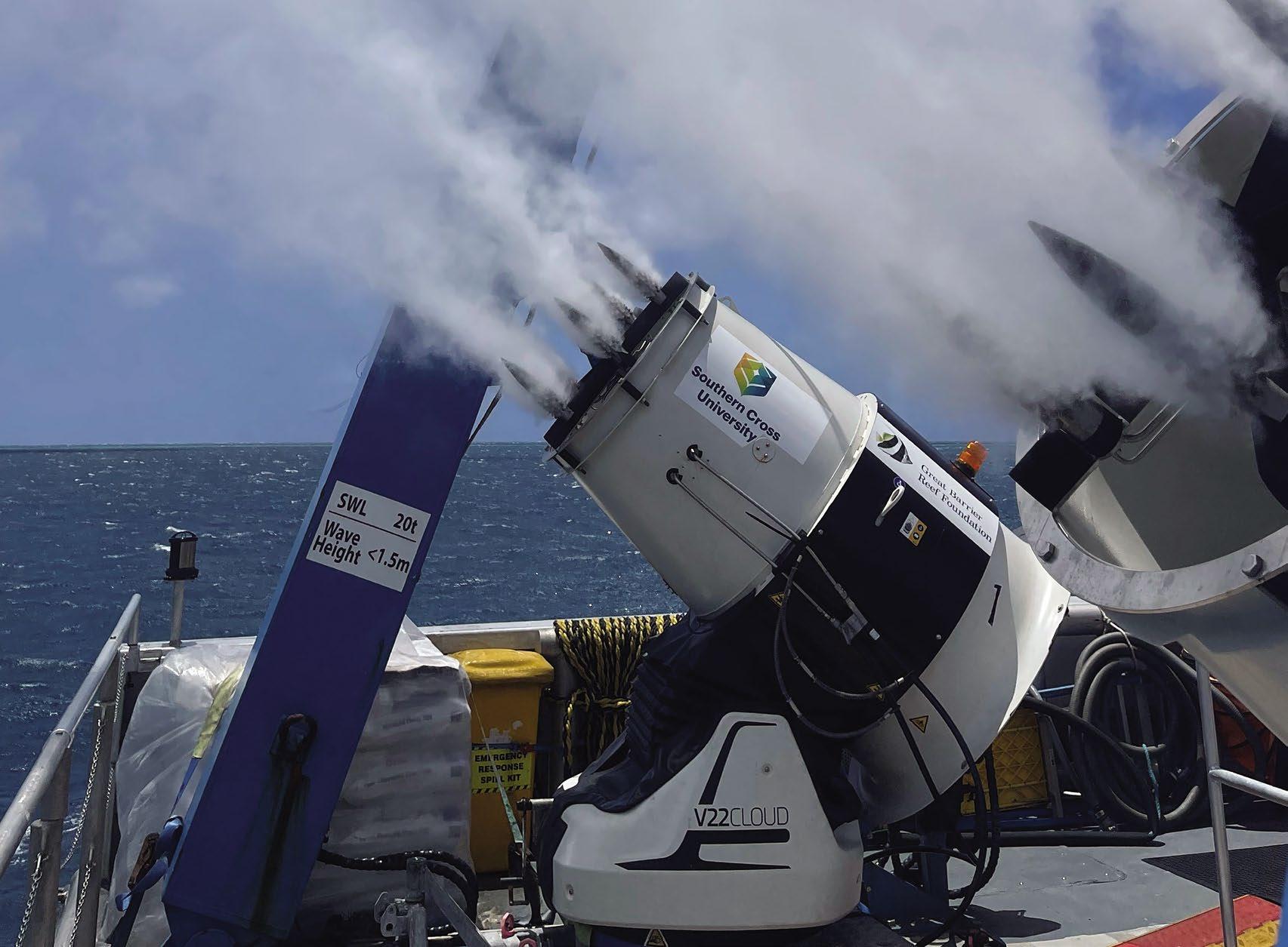 Marine cloud brightening is an experimental technique designed to shade coral reefs from marine heatwaves that can lead to coral bleaching. The cloud brightening project is led by Associate Professor Daniel Harrison and has been supported by the Myer Foundation, QLD Govt, the Australian Federal Government through the Reef Restoration and Adaptation Program, and now the UK Government through the Advanced Research and Invention Agency (ARIA). Associate Professor Harrison and his research team have devised a system using water cannons, mounted on the back of boats, that spray seawater droplets into the sky through tiny nozzles.