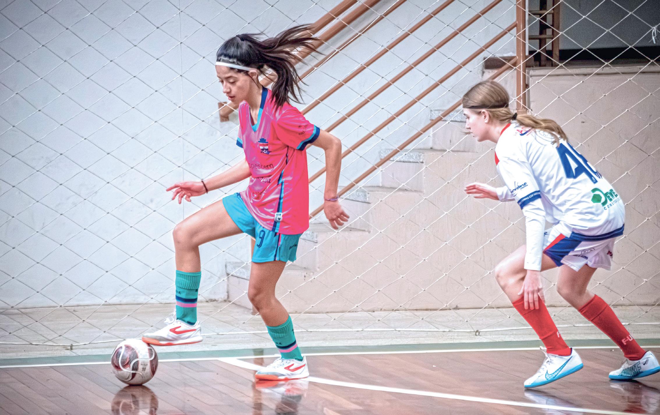 gorias sub-11, sub-13 e sub-15. Mergen ressalta que, embora equilibrar a participação de meninos e meninas seja um objetivo, ainda não é possível estabelecer comparações, visto que há maior demanda na atividade pelos garotos. "Competições e torneios ainda são predominantemente masculinos. No Vale do Caí, as escolas estão em processo de mudança para que, em breve, possamos construir e atingir um quadro similar no futebol e futsal feminino regional, como já ocorre há