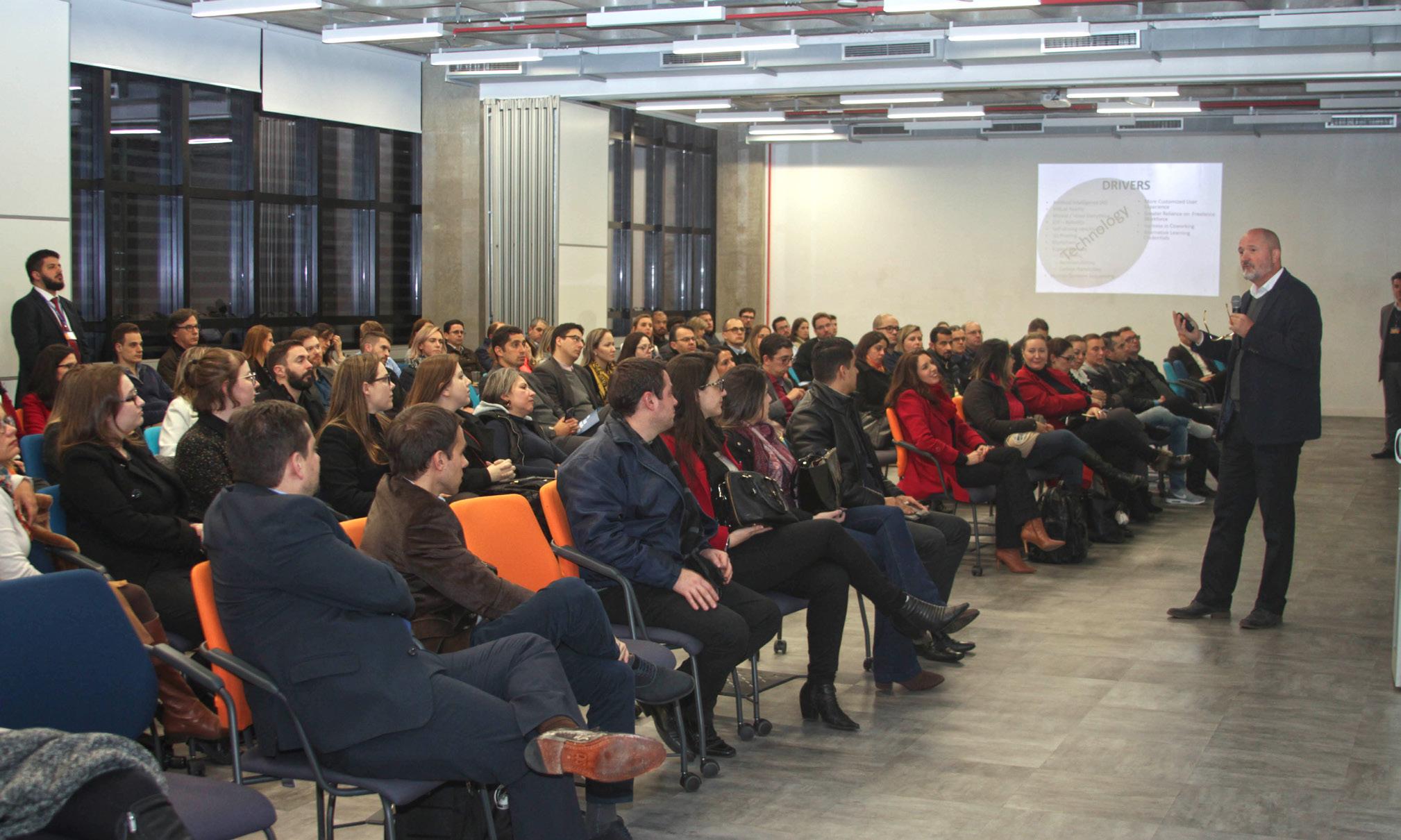 “Qual é o tipo de organização vai prosperar neste grande período de transformação digital?”, indaga o palestrante. “Isso para pensarmos o papel da liderança. E, a partir daí, como sair de um comportamento reativo para um