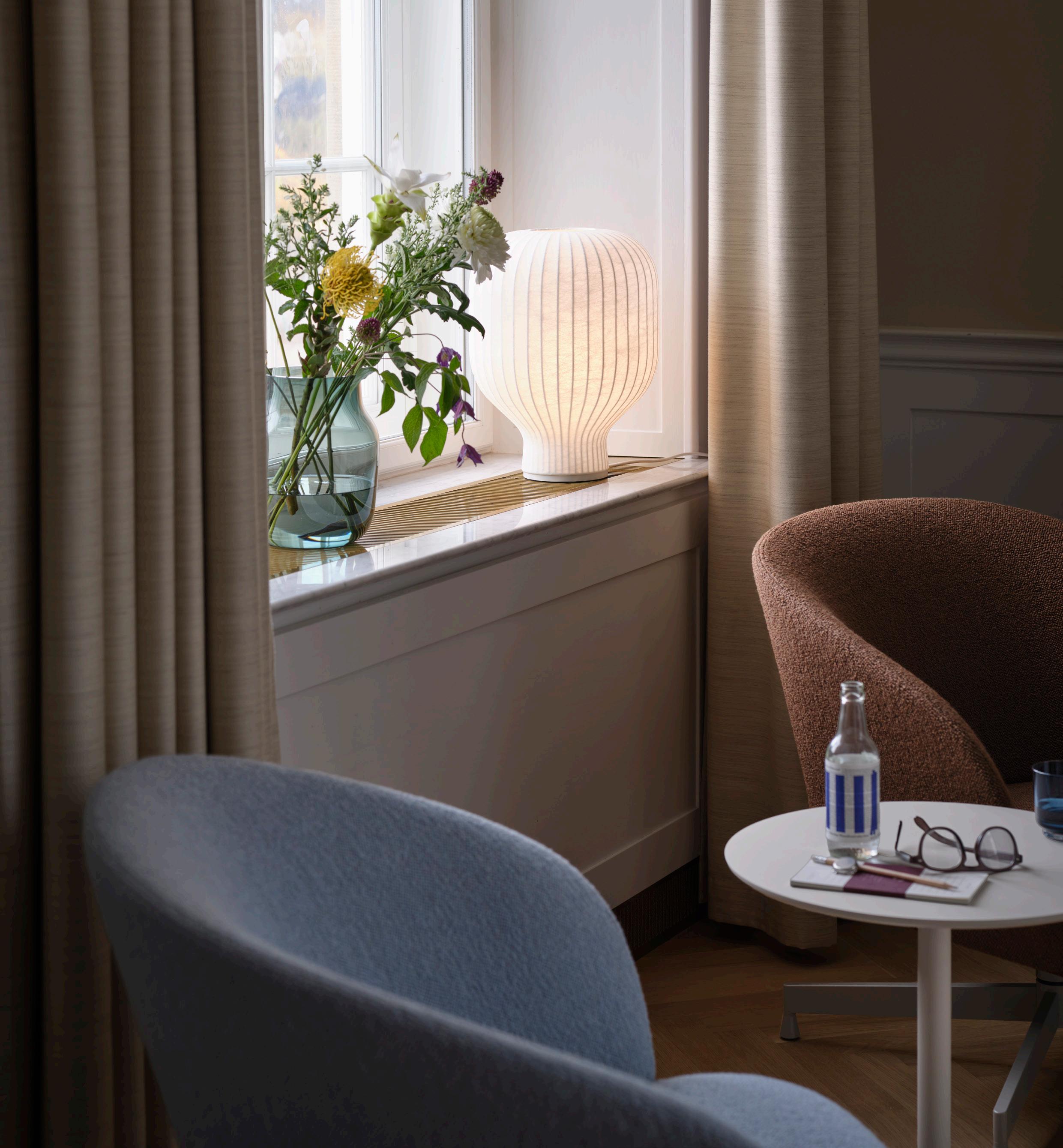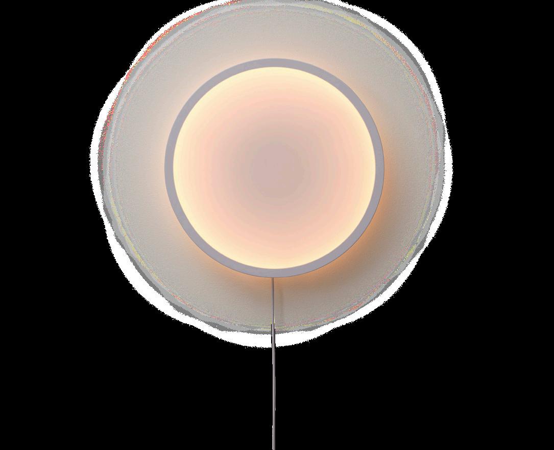 Calm Wall Lamp offers a new perspective on lighting altogether, with a rare blend of atmospheric lighting and sculptural qualities. While it is inherently functional, it is also a work of art in its own right. Its textile surface gently diffuses the light, forming a gradient from its edge to the central light source. The ability to adjust the lighting temperature allows the user to create calm, atmospheric light according to their own preferences and needs. A matte rubber band frames Calm Wall Lamp, lending a crisp edge to the softness of the organic design.