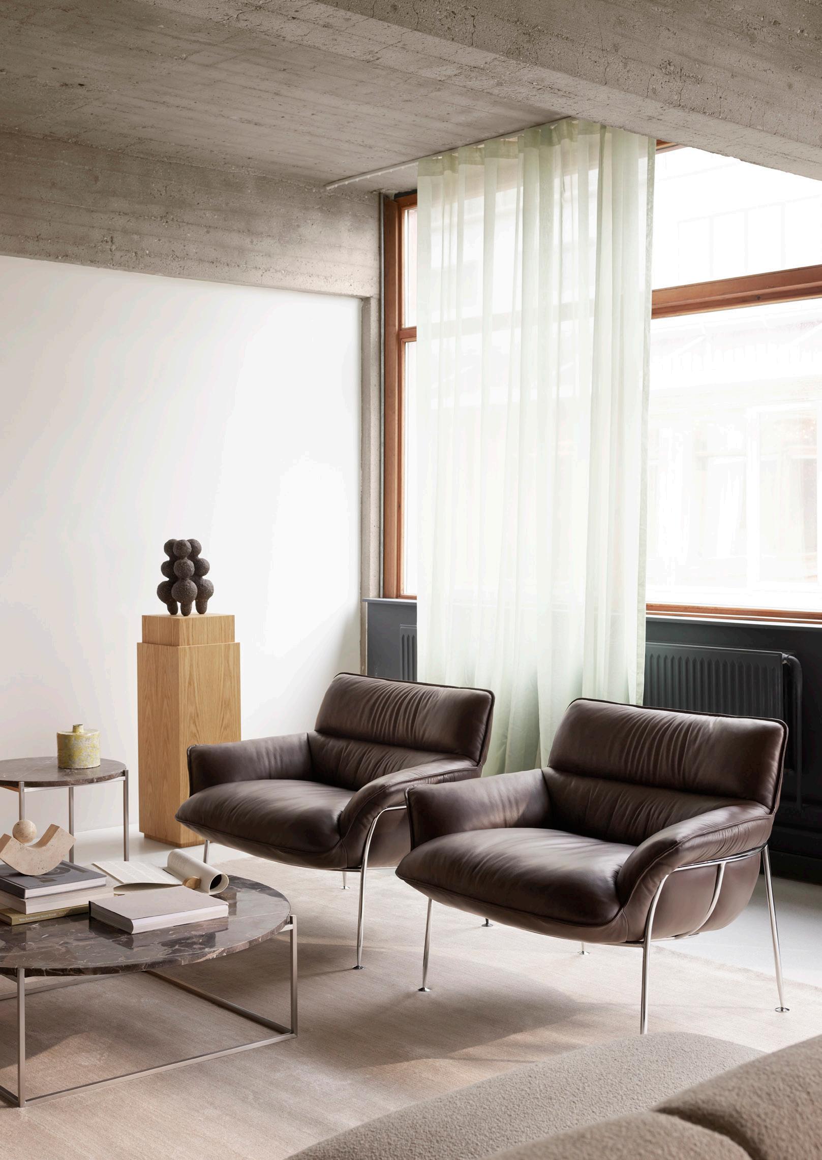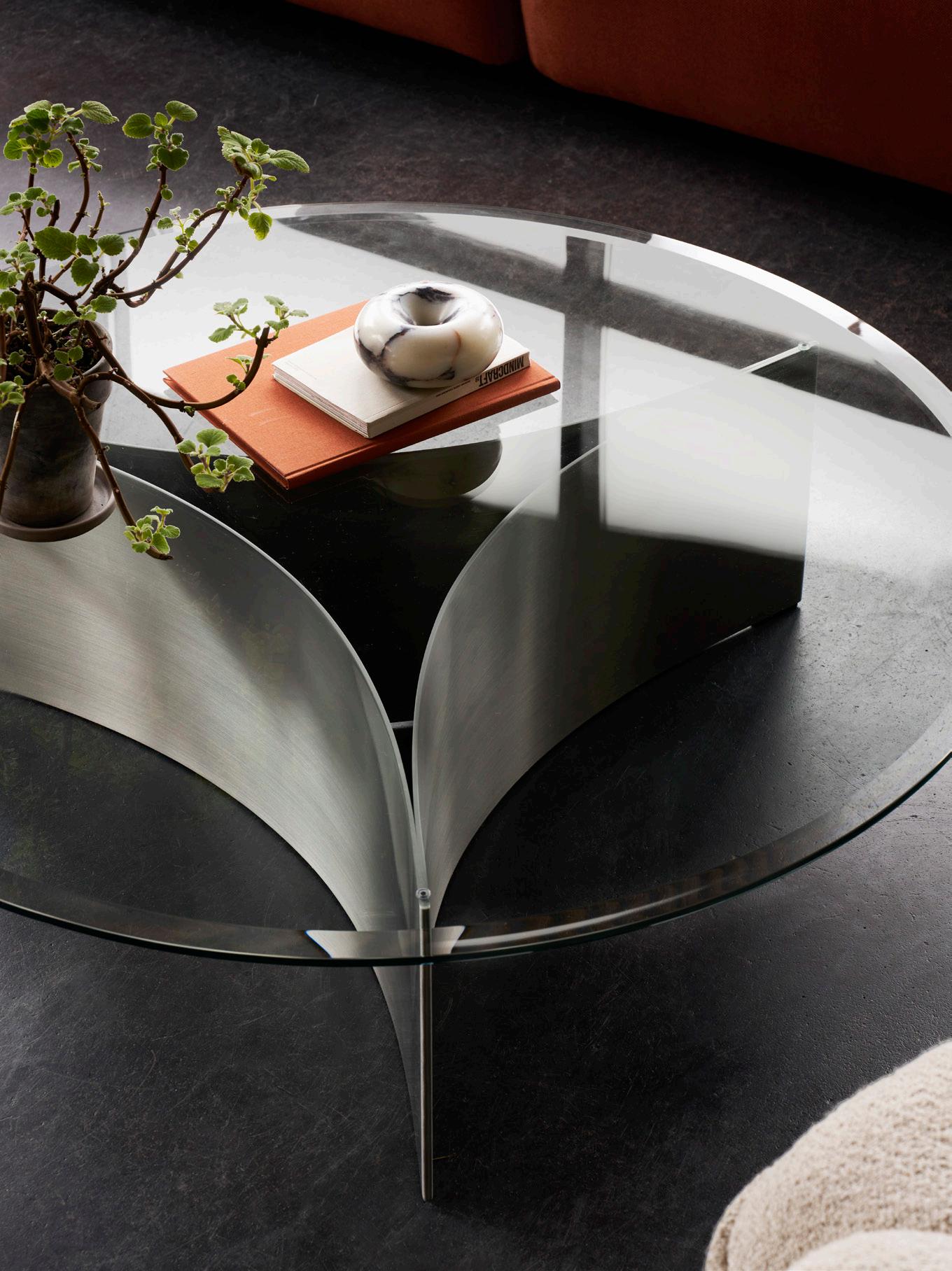 This season, we introduce chrome, brushed steel, and transparent glass - modern elements that elegantly complement our upholstered designs, natural materials, and bold finishes. Highlights include the new Montholon Curved by Tristan Lohner, updated interpretations of the Arc Table and Circle Table, and the Duvet Lounge Chair by Skogstad & Wærnes, now reissued with a chrome-plated steel frame.
