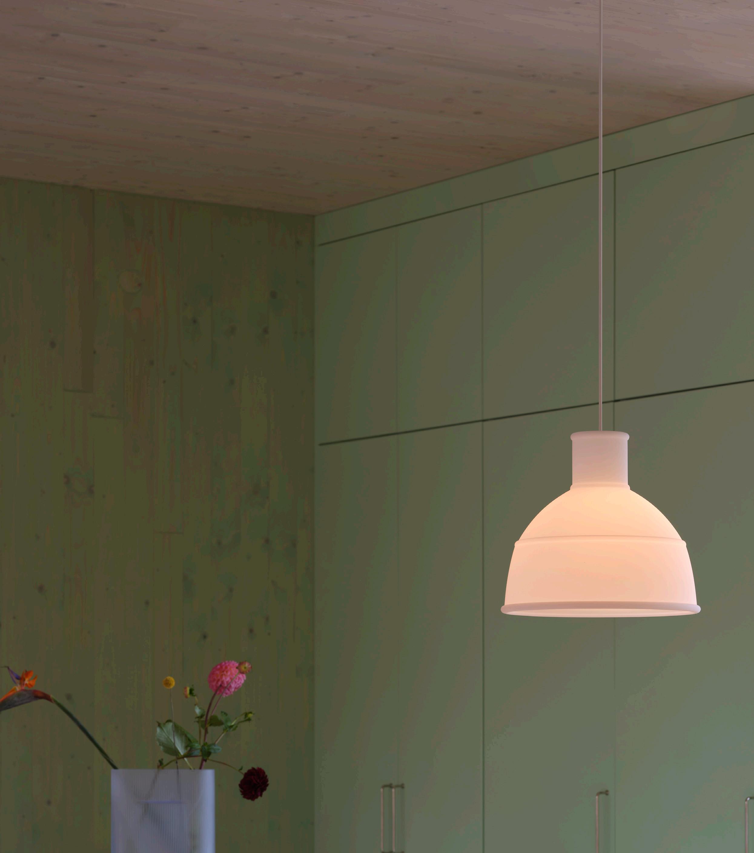 We wanted to bring a new perspective to the classic industrial light with the Unfold Pendant Lamp, creating an expression that is at once timeless and modern. To achieve this, the design comes in a rubber silicone material for a playful and tactile character along with a matte touch. With its modern and flexible material, the Unfold Pendant Lamp can be folded into a flat box for eco-friendly shipping and a contemporary look.