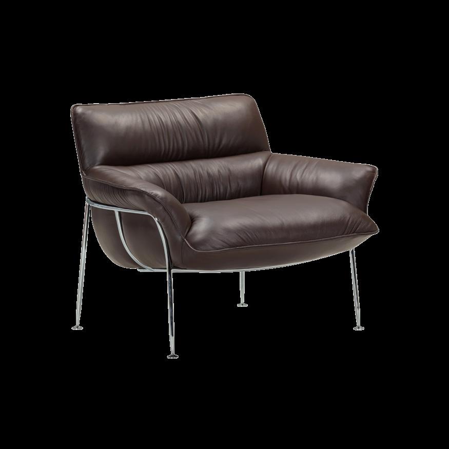 Reissued with a chrome-plated steel base, the Duvet Lounge Chair takes on a fresh and modern aesthetic, enhancing its light and contemporary appeal. Designed by Norwegian duo Skogstad & Wærnes, the Duvet Lounge Chair’s defining feature is a single, tailored upholstery piece draped over the chair like a cosy coat. Supported by a sleek tubular frame, the seat is enriched with precise pinch-seam stitching accentuating its distinctive silhouette. Thoughtfully tucked fabric creates intentional folds, enhancing the visual appeal and lending a duvetlike softness to the seat.
