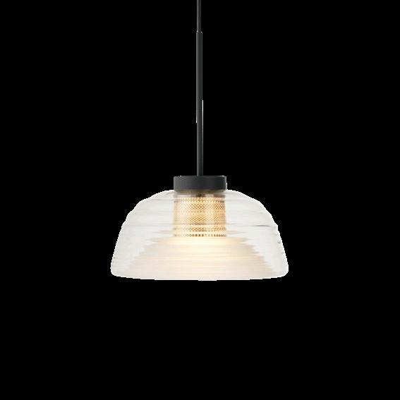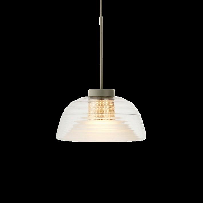 The Two-Layer Pendant brings new perspectives to the classic glass pendant with its rippled, mouth-blown glass, creating unique optical effects from different angles. This refined design combines clear and frosted glass with a punched steel mesh, providing ample, glare-free light. The blend of glossy and matte finishes creates a harmonious, sculptural form that acts as a self-illuminating sculpture. Perfect for dining settings or above counters, it adds visual intrigue and elegance to any space.