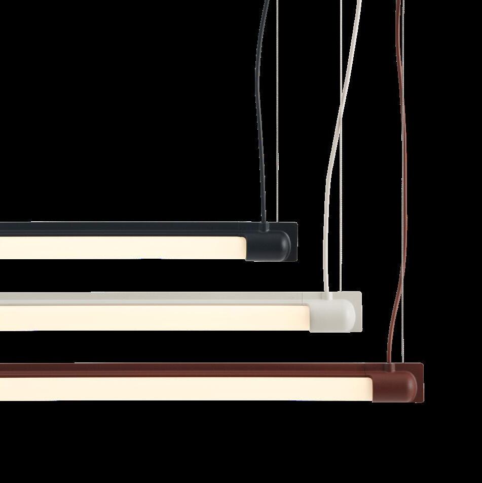 Fine Suspension Lamp is a minimal design refined to include only the essential; a slim light, a form-pressed fixture with aluminium end caps, a cord. We wanted it to feel delicate, almost jewelry-like — a sleek band of white light. It is a simple, raw expression of clarity and directness with an industrial character. Possible to hang both horizontally and vertically, we designed it so that the lamp’s light source is laid bare, yet gives a no-glare, comfortable light.