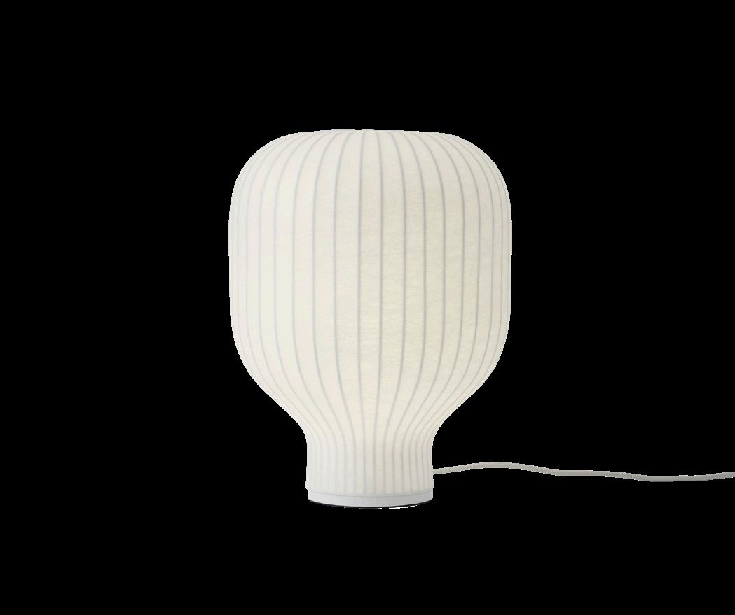 The Strand Table Lamp references design history while remaining distinctly modern. Its shape is soft and playful, and its sculptural design is fitted with a hidden light source that illuminates the whole of its monolithic form. The lamp is made of sprayed cocoon material that consists of tiny strands for a complex, intriguing structure that gives the Strand Table Lamp an almost cloud-like appearance. Filtering light for a warm, comfortable glow brings a sense of comfort, harmony, and a refined sensitivity to any room.